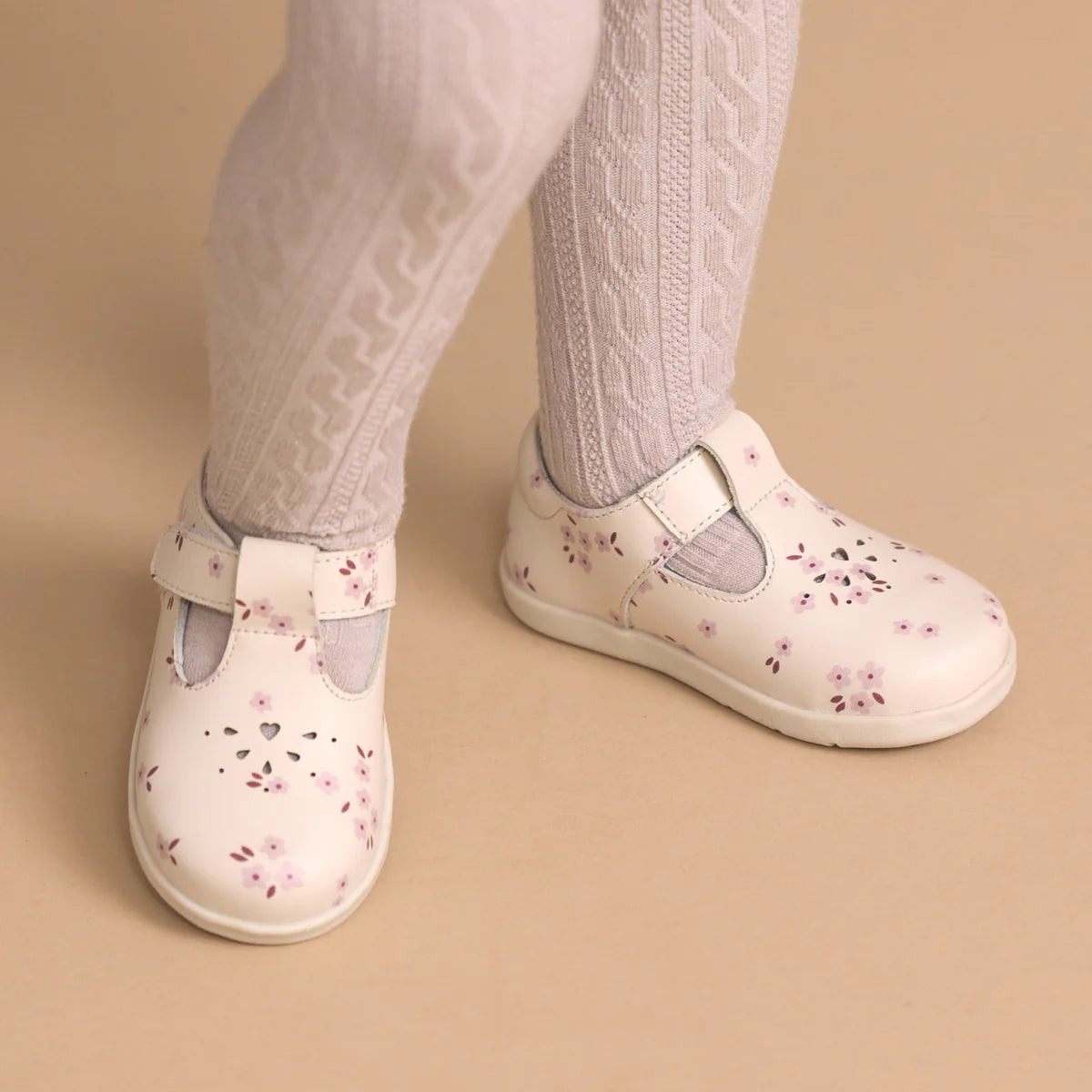 • Classic T-bar design with heart cut-out on the vamp