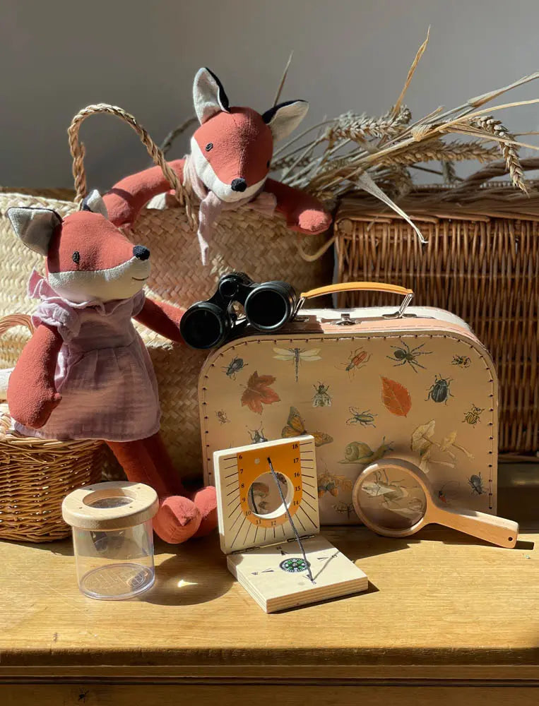 Little hands learn to navigate and observe nature whilst discovering quality wooden instruments that feel wonderfully smooth. The charming case features delicate nature illustrations and careful stitching that will last through countless expeditions.