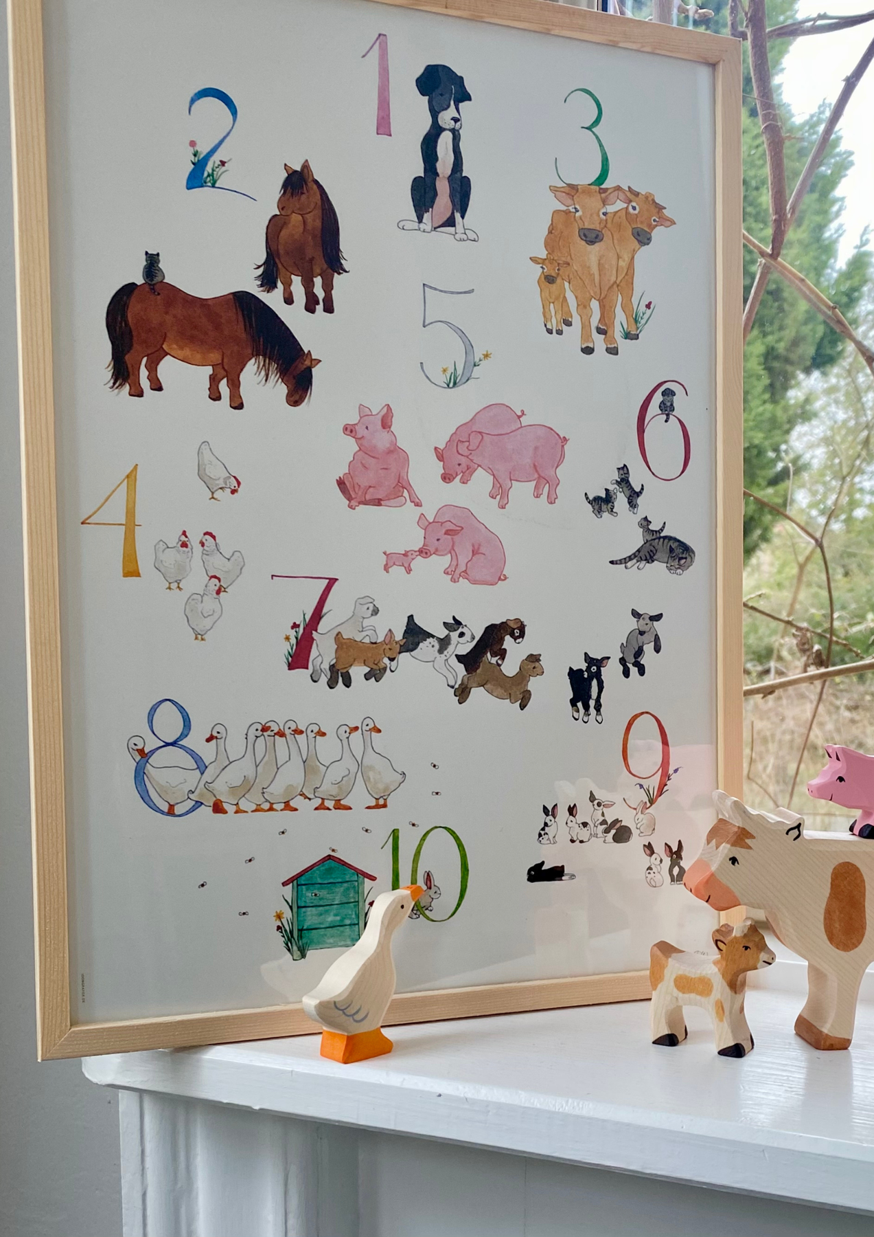 Learn to count with this cute number poster. Hang it by your bedside and end the day talking about the animals on the farm. What does he say, where does the milk come from and why are bees so important?