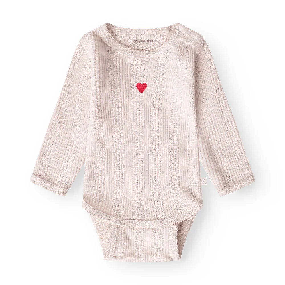 Soft brushed pointelle bodystocking with embroidered small heart at front.